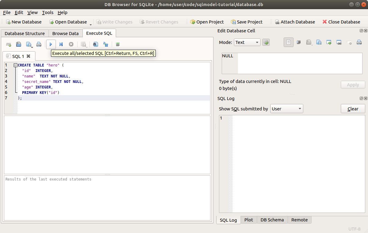 In the next chapters we will start using SQLModel to interact with the database, and we will continue to use DB Browser for SQLite at the same time to look at the database underneath. 🔍